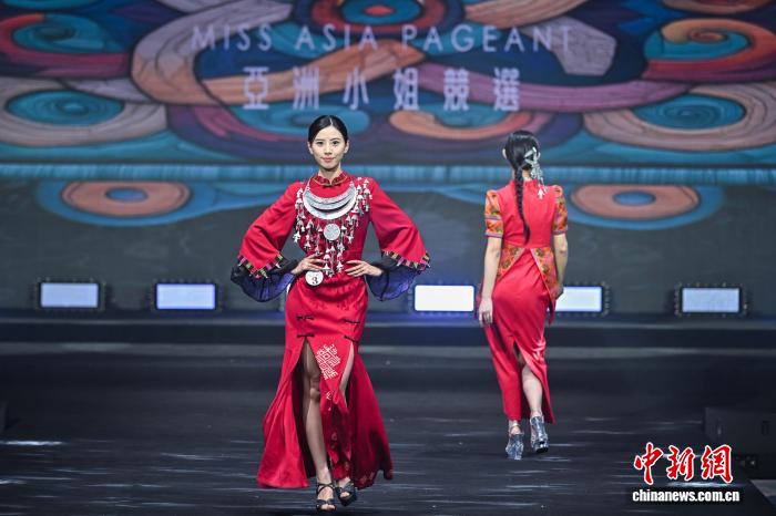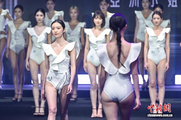 图为参赛美人停止富丽号衣艳服演出。中新社记者 骆云飞 摄