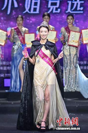图为参赛佳人暖静怡停止富丽号衣艳服上演。中新社记者 骆云飞 摄