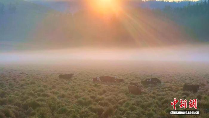 不日,正在新疆阿勒泰区域阿禾马路一起,托勒海特夏牧场清早现“金色”云海,云雾如沉纱般笼罩正在广袤的草本取绵延的山峦之上。阳光脱透云雾,给山丘、丛林染上1层金色斑斓,使人陶醉。阿勒泰市融媒介重点供图